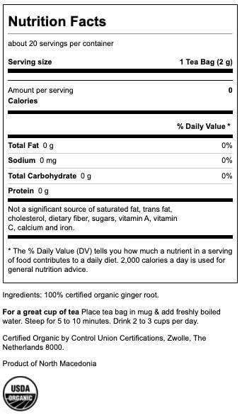 Swanson 100% Certified Organic Ginger Root Tea 20 Bag(S)