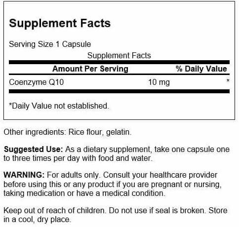 Swanson Coq10 10 Milligrams 100 Capsules