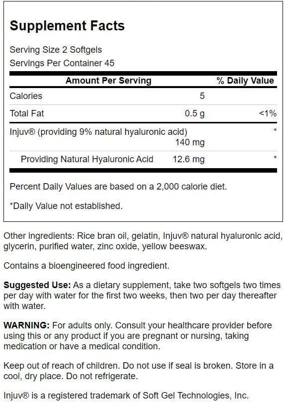 ULTIMATE MOISTURE RETENTION: Swanson's unique preparation of Injuv HA helps to maintain fluid balance within the cells, supporting moisture retention capabilities in the skin. Support your skin health with our easy to swallow softgels!