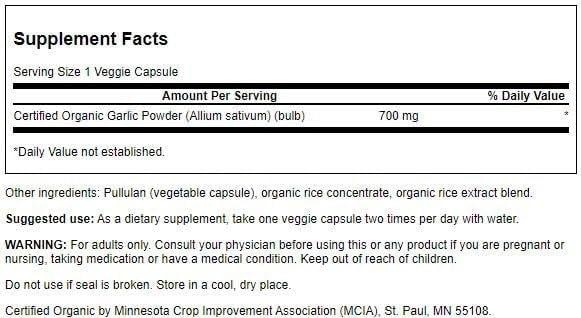 Swanson Made with Organic Whole Garlic 700 Milligrams 60 Veg Capsules