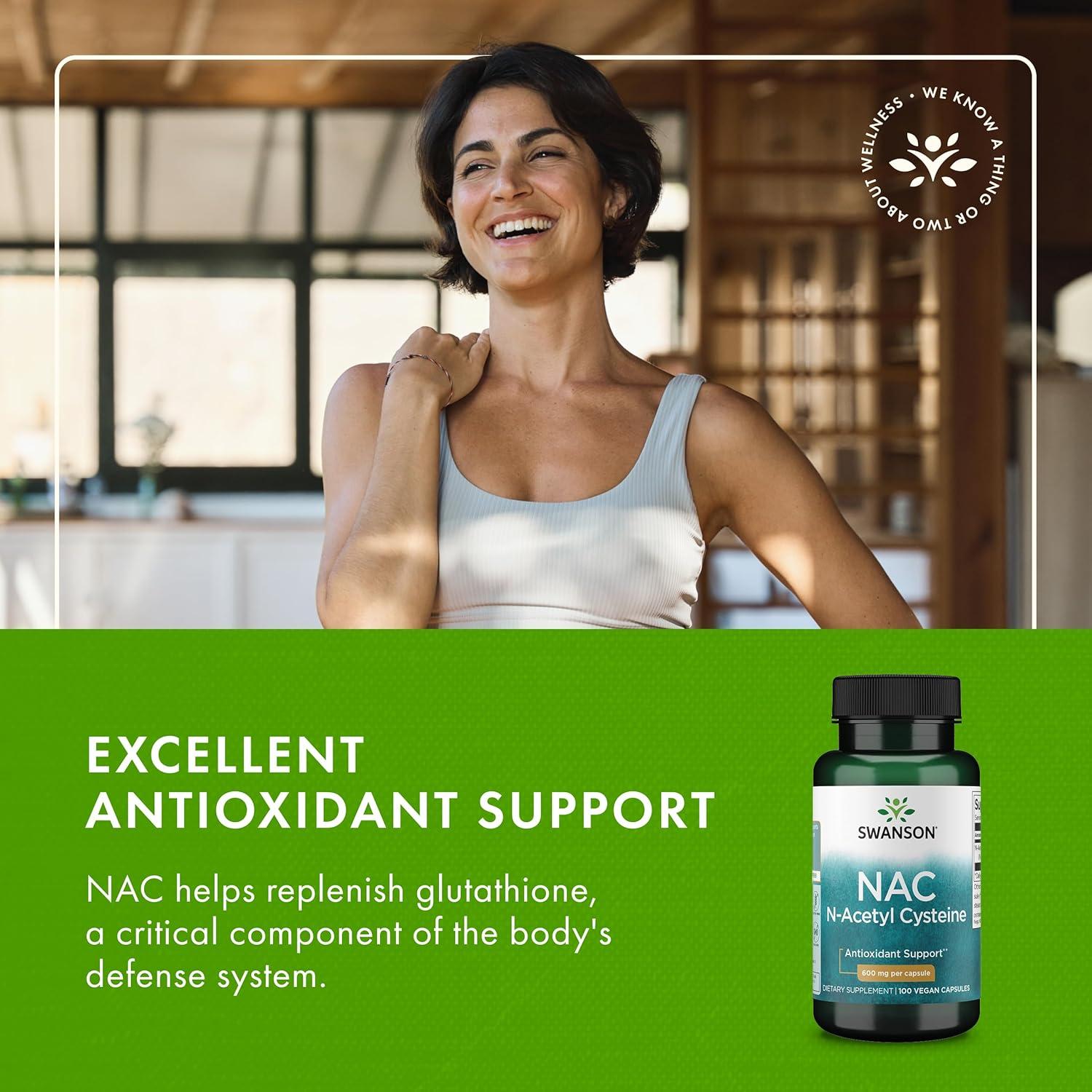 Premium NAC Supplement: Swanson NAC N-Acetyl Cysteine provides 600 mg of this antioxidant amino acid per serving for daily use