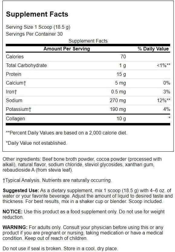 Swanson Real Food Bone Broth Collagen – Chocolate 19.5 oz Pwdr