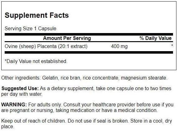Swanson Sheep Placenta Glandular Substance 400 Milligrams 60 Capsules