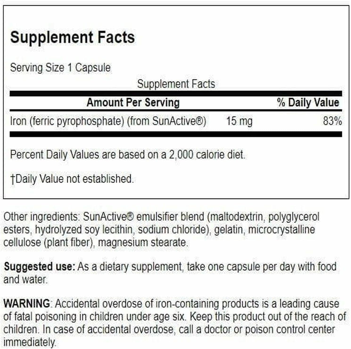 Swanson Sunactive Non-Irritating Iron 15 Milligrams 90 Capsules