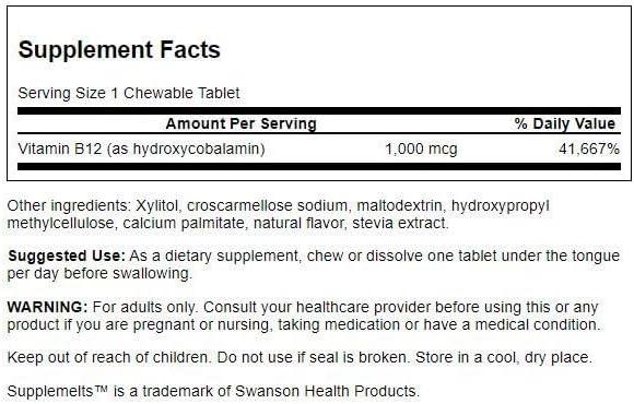 Swanson Supplemelts Vitamin B-12 1000 mcg 60 Chwbls