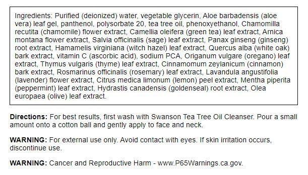 Oil Control: Swanson Tea Tree Oil Toner removes excess oil without over-drying.