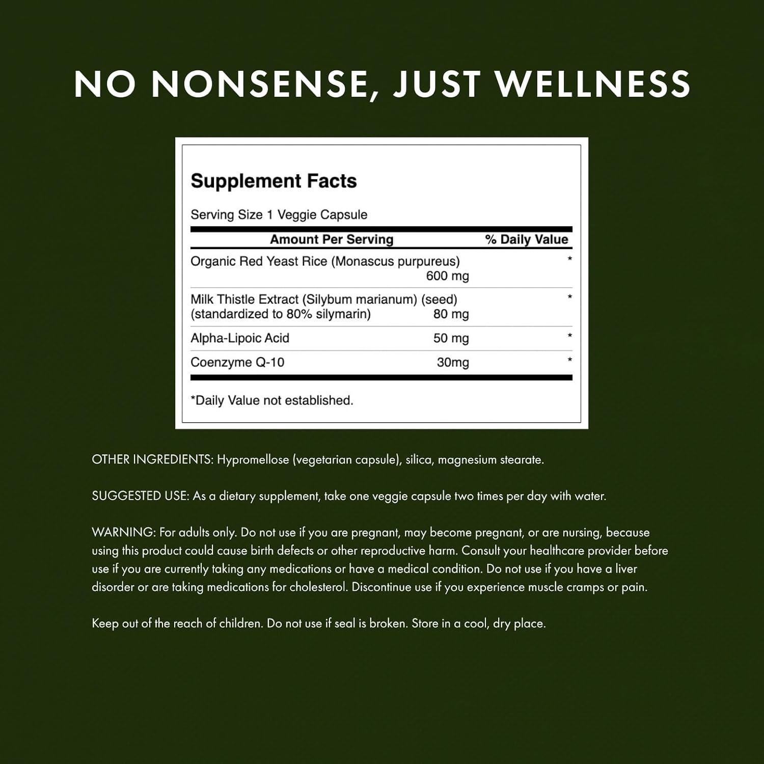 Swanson Traditional Red Yeast Rice & CoQ10 with Milk Thistle and Alpha Lipoic Acid 60 Veg Capsules