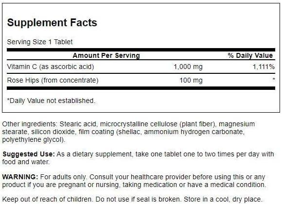 Swanson Vitamin C with Rose HIPS Immune System Support Skin Cardiovascular Health Antioxidant Supplement 1000 mg 250 Tablets (Tabs)