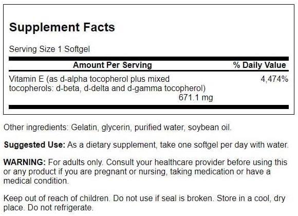 Swanson Vitamin E Mixed Tocopherols 1000 Iu (671.1 Milligrams) 250 Sgels