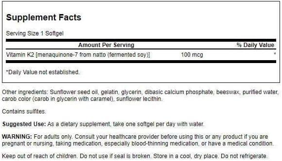 HEART HEALTH & BONE HEALTH SUPPORT:Swanson's Vitamin K2 Supplement features vitamin K2 from natural Japanese Natto, a fermented soybean product. This powerful vitamin helps to regulate calcium, promoting optimum heart and bone health.