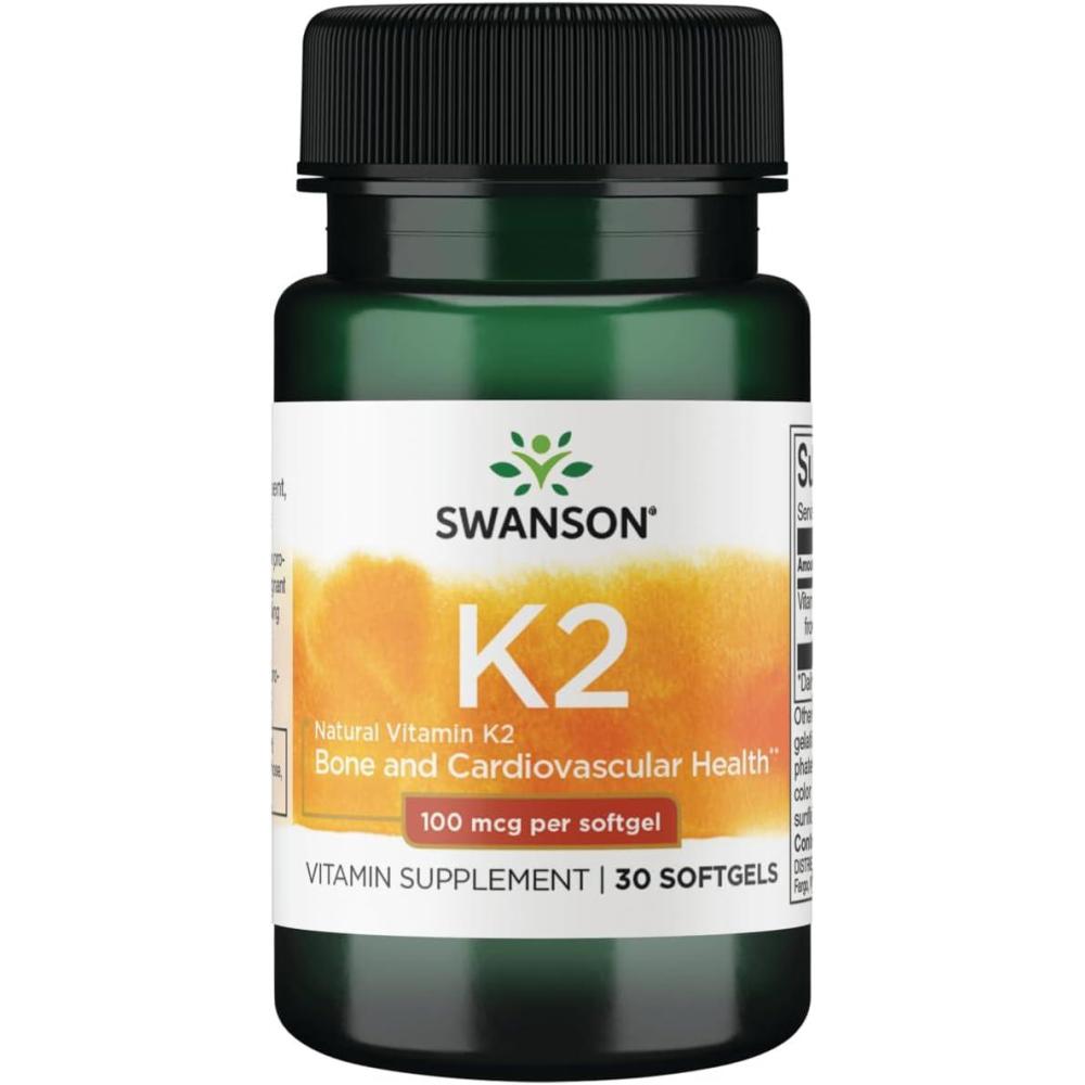 Swanson Vitamin K2 (Menaquinone-7) – Vitamin Supplement Supporting Cardiovascular and Bone Health – Made from Japanese Natto to Help Regulate Calcium – (30 Softgels, 100mcg Each)(30 Count (Pack of 1))